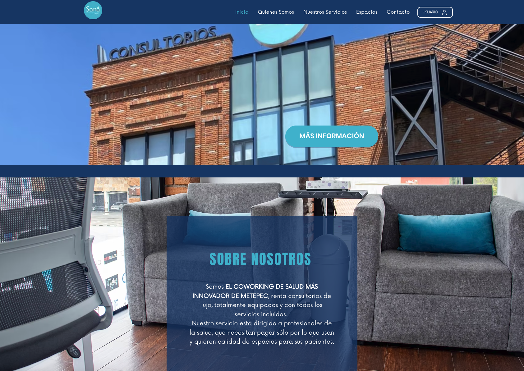 Sitio web para un espacio de coworking médico donde los profesionales de la salud pueden conocer los servicios disponibles, cotizar consultorios en línea y agendar citas con fecha y hora de forma rápida y sencilla.